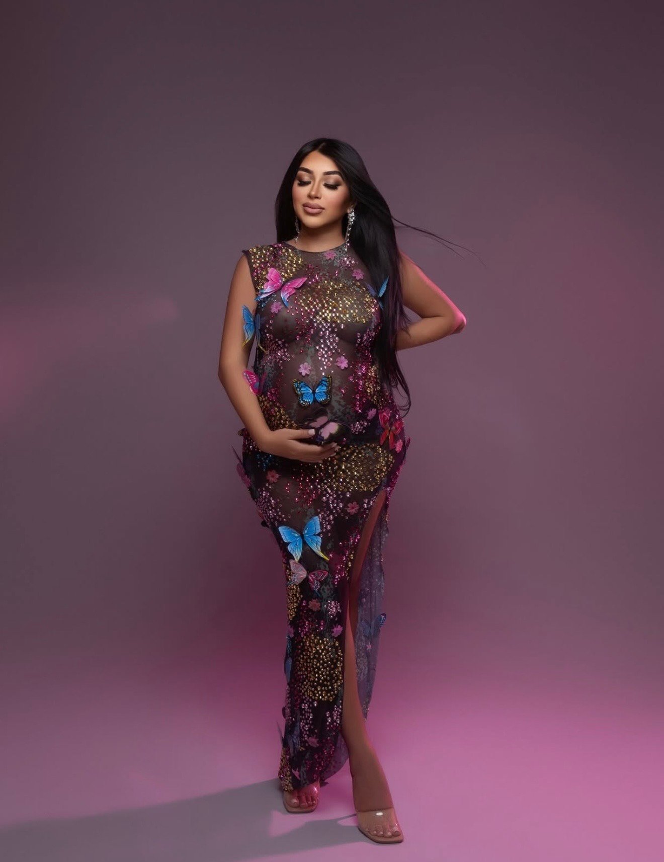 Rhinestone and 3D butterfly embellishments ironed on