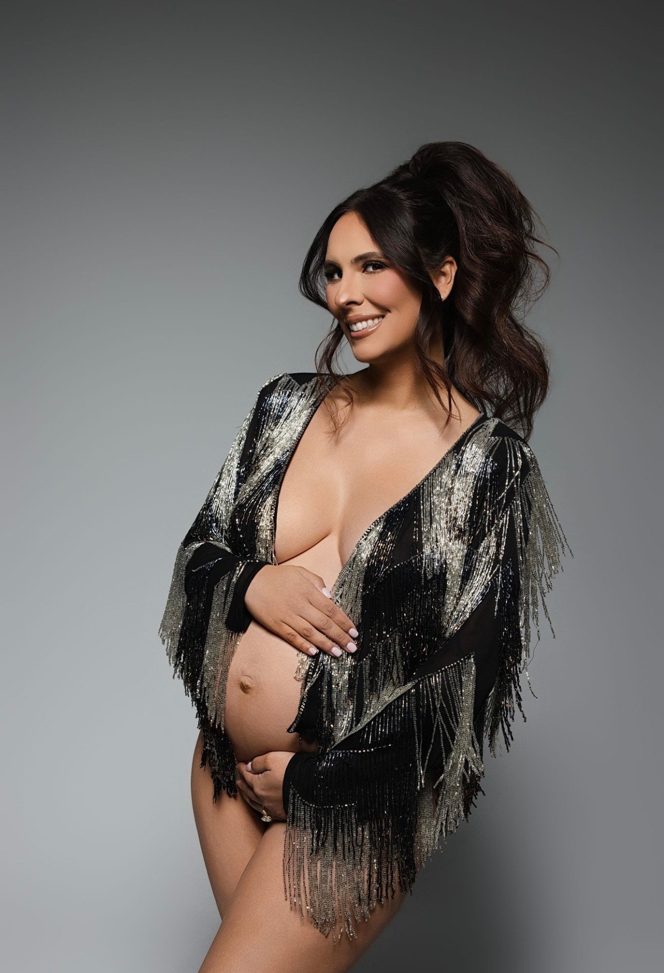 Style: Abstract Design Heavy Embellished Open Front Tassel Jacket